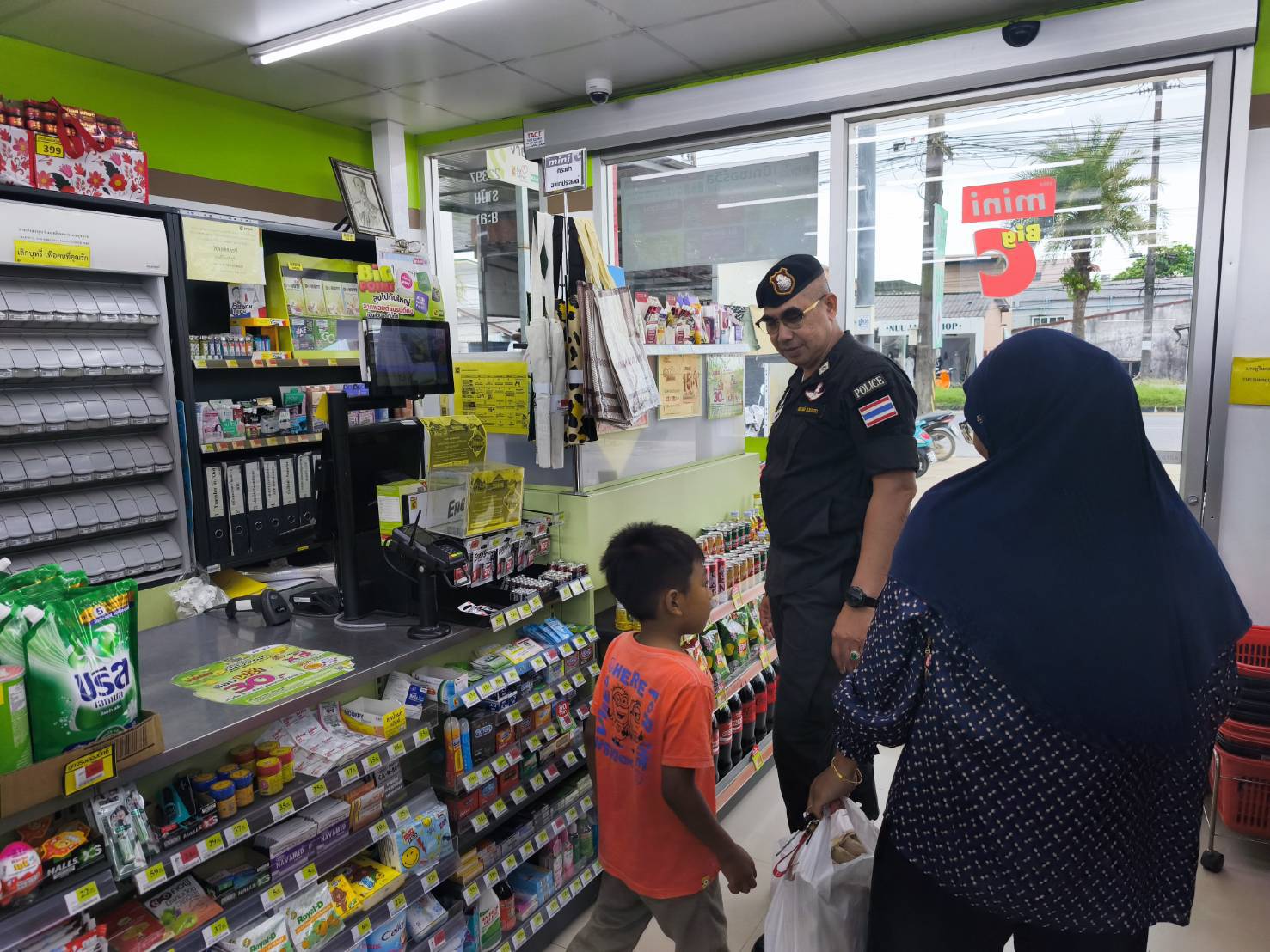 วันที่ ๑๗ เมษายน ๒๕๖๘ เวลา ๑๖.๓๐ น. พ.ต.อ.อดุลย์ เง๊าะ ผกก. สภ.รามัน ตรวจเยี่ยมร้านมินิบิ๊กซี พูดคุย