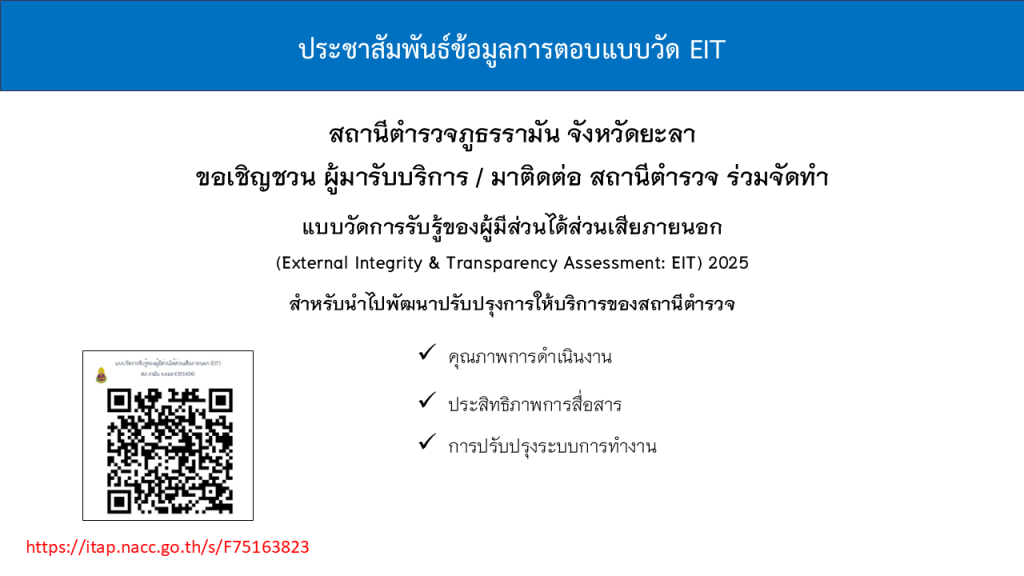 เมื่อวันที่ ๕ กุมภาพันธ์ พ.ศ. ๒๕๖๗ เวลา ๑๓.๓๐ น. พ.ต.อ.อดุลย์ เง๊าะ ผกก.สภ.รามัน , พ.ต.ท.ทิพย์ชัย ช