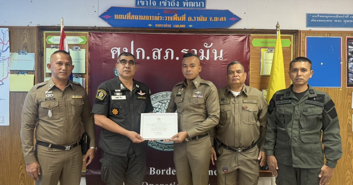 พ.ต.อ.อดุลย์ เง๊าะ ผกก.สภ.รามัน ,พ.ต.ท.ทิพย์ชัย ชลสินธุ์ รอง ผกก.ป.สภ.รามัน ,พ.ต.ท.อาดัม รอเหมมัน รอง ผกก.(สอบสวน)สภ.รามัน,ว่าที่ พ.ต.ท.สนั่น ศรีสุวรรณ สว.อก.สภ.รามัน มอบเกียรติให้แก่ ด.ต.แวสุไลมาน ดอเลาะ ตำรวจที่มีเจตนาดีต่อสำนักงานตำรวจแห่งชาติโดยบริจาคโฉนดที่ดินเนื้อที่ 0-2-08-0 ไร่ เป็นเงินจำนวน 124,800 บาท ให้แก่สำนักงานตำรวจแห่งชาติ